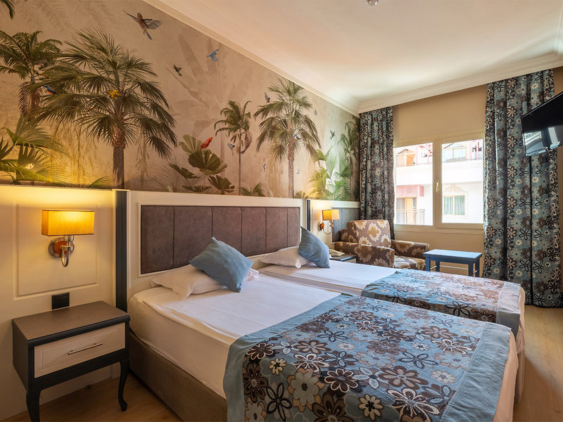 Essen und Trinken: all inclusive plus: Frühstücksbuffet, mittags und abends kaltes/warmes Buffet, gelegentlich Themenabende, wahlweise 1x pro Aufenthalt Abendessen im À-la-carte-Restaurant (türkisch/italienisch; Reservierung; Mindestaufenthalt 4 Tage)
