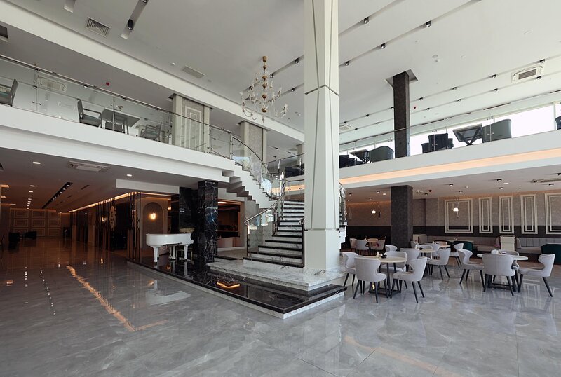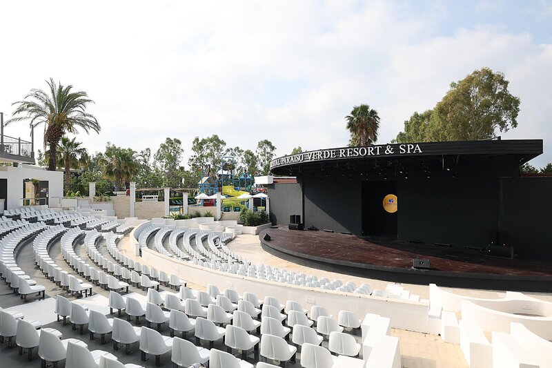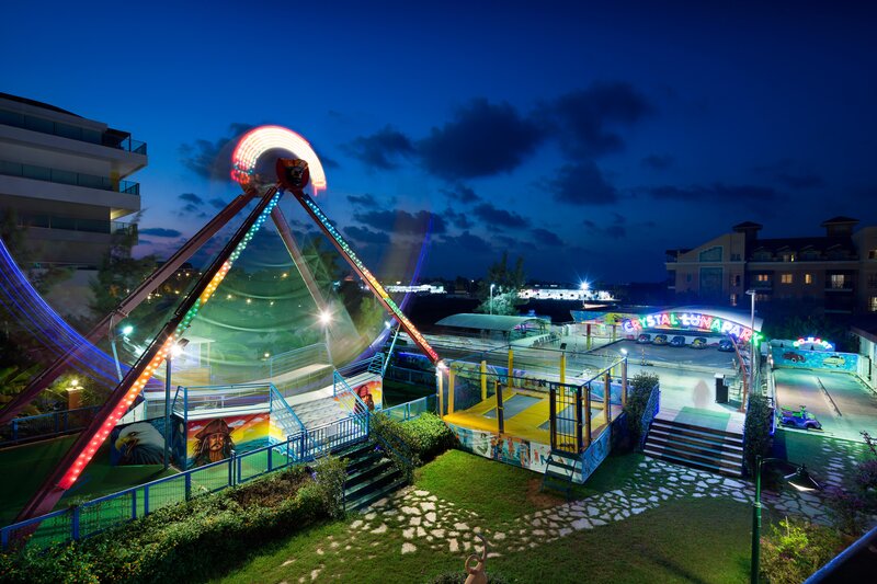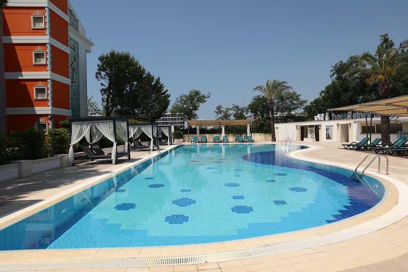 Vybavenie: 8 budov, cca 32 000 m2 záhradnej plochy. Bazénový areál, 6 tobogánov (štdw.), relaxačný bazén, slnečná terasa, ležadlá, slnečníky, vankúše, osušky, bazén/snack bar, plážový/snack bar na pláži. Budova recepcie, recepcia, lobby bar, WiFi, TV kútik, bufetová reštaurácia, terasa, 3 à la carte reštaurácie (talianska, turecká; rezervácia podľa dostupnosti; morské špeciality (za poplatok), každá od 7 rokov), kaviareň, bary, herňa, diskotéka, obchody, wellness centrum, kaderníctvo. Kategória štátu: 5 jednotiek, 720 izieb, 5 poschodí, 8 výťahov.