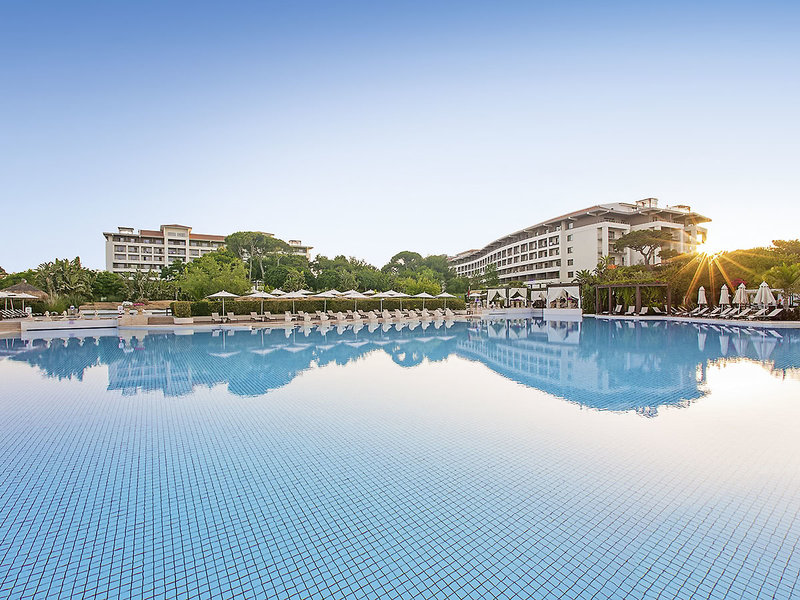 Ausstattung: Garten mit ca. 6.630 qm großer Poollandschaft, 5 Rutschen (stdw.), sep. Kinderpool, Sonnenterrassen, Pool-/Snackbar. Liegen, Auflagen, Schirme, Badetücher. Empfangshalle, Rezeption, Lobbybar. WLAN im gesamten Bereich. Hauptrestaurant, 7 À-la-carte-Restaurants (teilw. ab 12 J.), 12 Bars, Geschäfte, Gamezone, Kino, Disko, Patisserie. Landeskat.: 5 St., 583 Zi.