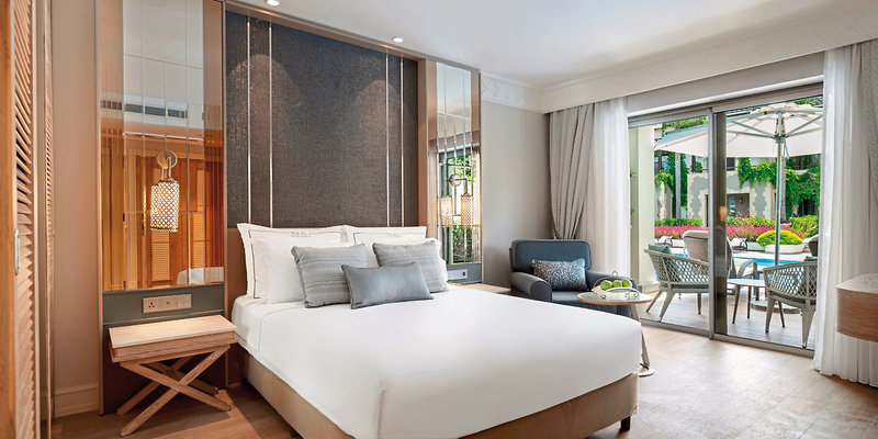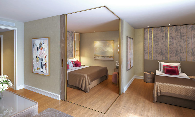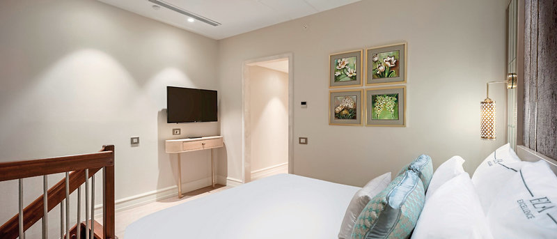 - 81-90 m², vhodné pre rodiny, so spojovacími dverami, výhľad do záhrady, nefajčiarske, 2 samostatné spálne, manželské postele (1 manželská posteľ alebo 2 samostatné postele), 2 kúpeľne, sprchovací kút, 2 toalety, župan, papuče, fén, kozmetické zrkadlo, klimatizácia (centrálne ovládaná), minibar, trezor, TV (satelitná TV, plochá obrazovka), balkón (zariadený)