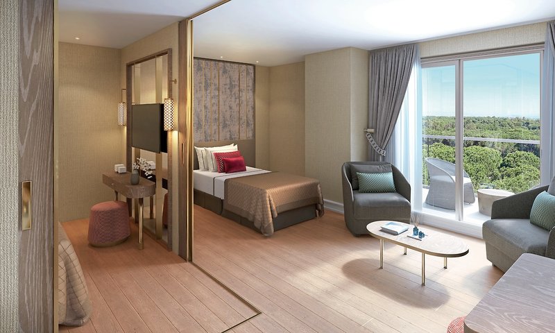 - 81-90 m², vhodné pre rodiny, so spojovacími dverami, výhľad do záhrady, nefajčiarske, 2 samostatné spálne, manželské postele (1 manželská posteľ alebo 2 samostatné postele), 2 kúpeľne, sprchovací kút, 2 toalety, župan, papuče, fén, kozmetické zrkadlo, klimatizácia (centrálne ovládaná), minibar, trezor, TV (satelitná TV, plochá obrazovka), balkón (zariadený)