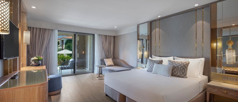 Rodinná izba Typ C/Lake House Rodinná izba: S podobným vybavením ako izby Lake House, ponúkajú dve samostatné spálne so spoločným vstupným priestorom, dve kúpeľne/WC a TV, majú výhľad na bazén a sú umiestnené na prvom alebo druhom poschodí. oblasti Lake House Area (LHF).
