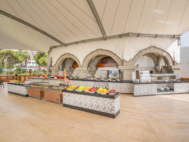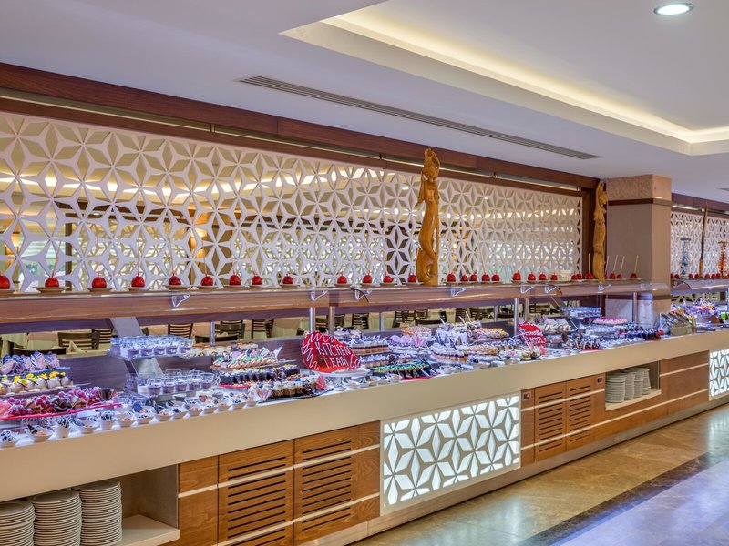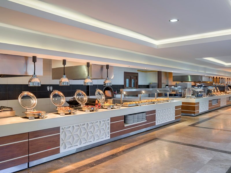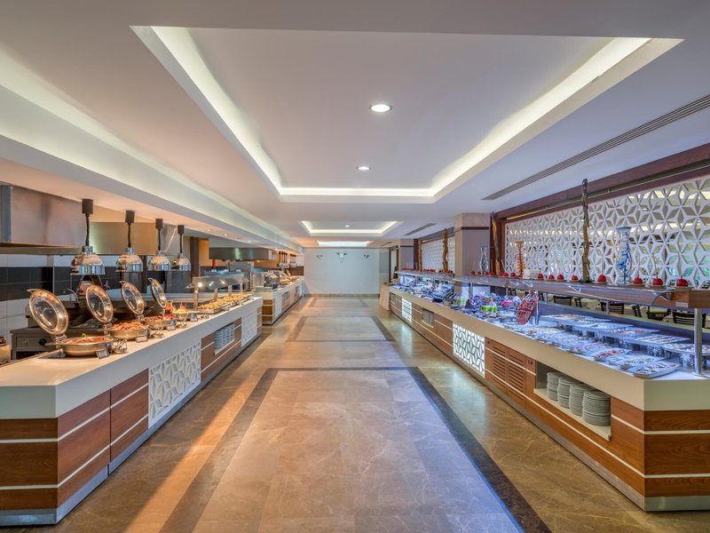 - Hauptrestaurant „MAIN RESTAURANT“: Küche: international, türkisch, Kinderbuffet: ohne Gebühr, Anfrage notwendig, Reservierung nicht notwendig, vegetarische Gerichte: ohne Gebühr, Reservierung nicht notwendig, vegane Gerichte: ohne Gebühr, Anfrage notwendig, Reservierung nicht notwendig, Buffet, Anfrage & Reservierung nicht notwendig, ohne Gebühr, saisonabhängig, täglich 07:00 Uhr - 00:30 Uhr, klimatisierbar, mit Terrasse, Kinderhochstuhl, angemessene Kleidung erwünscht