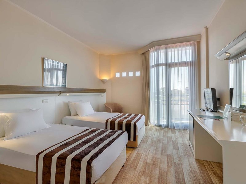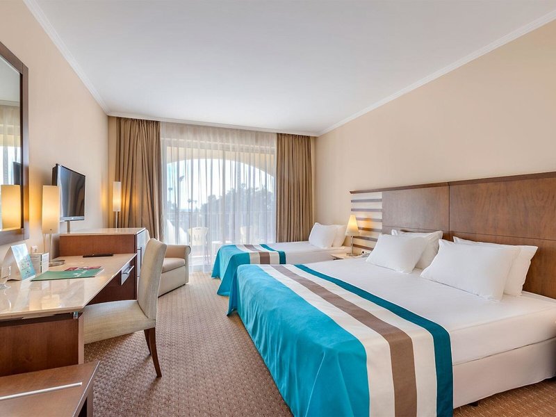 - Štandardná izba s výhľadom na more (DZM1), dvojlôžková izba, v hlavnej budove, výhľad na more, cca. 22 m², posledná kompletná rekonštrukcia v roku 2020, celkový počet izieb v tomto type izby: 1, rozloženie: 1 spálňa, klimatizácia: bezplatne, sezónne, kúrenie: sezónne, podlaha: laminátová, trezor: bezplatne, minibar: bezplatne, nealkoholické nápoje: bezplatne, voda: bezplatne, dopĺňanie minibaru: denne, telefón, televízor: plochá obrazovka, izbová služba: 24 hodín denne, za poplatok, upratovacia služba: denne, bezplatne, vaňa, papuče: bezplatne, fén, balkón: s posedením
