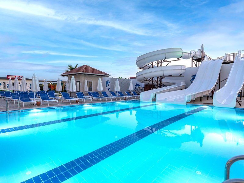 - Bazény: detský bazén, vonkajší bazén, slnečníky pri bazéne, ležadlá pri bazéne, tobogán