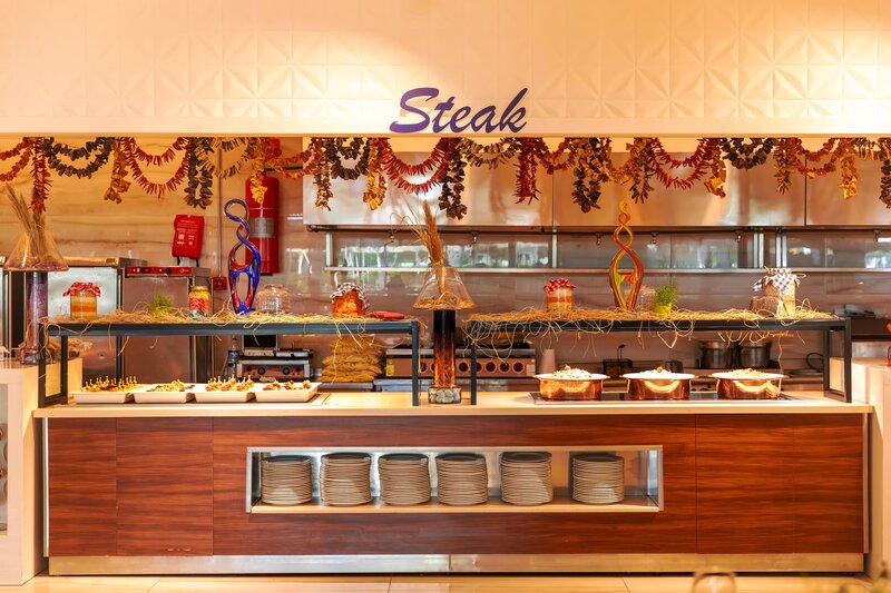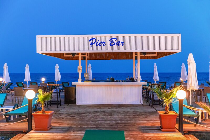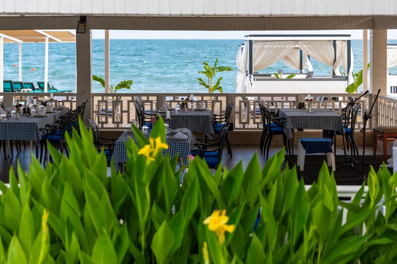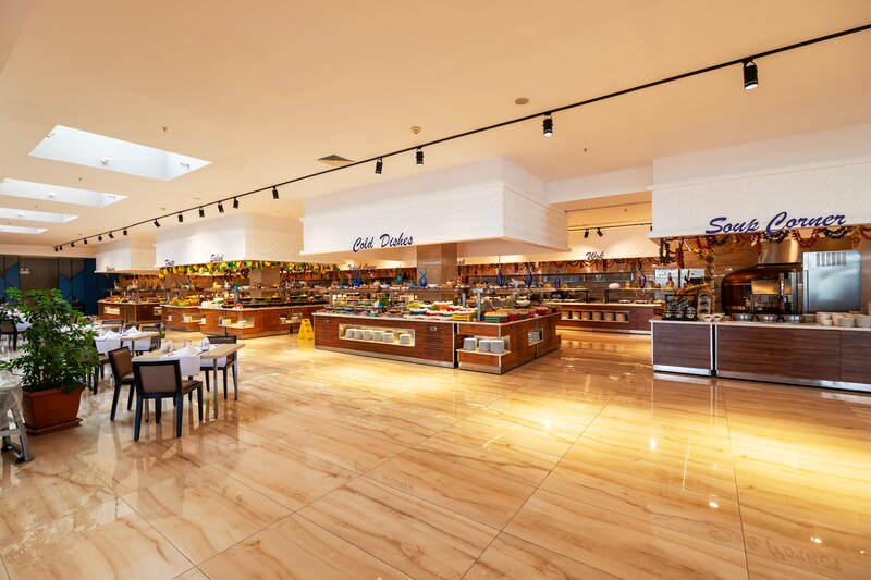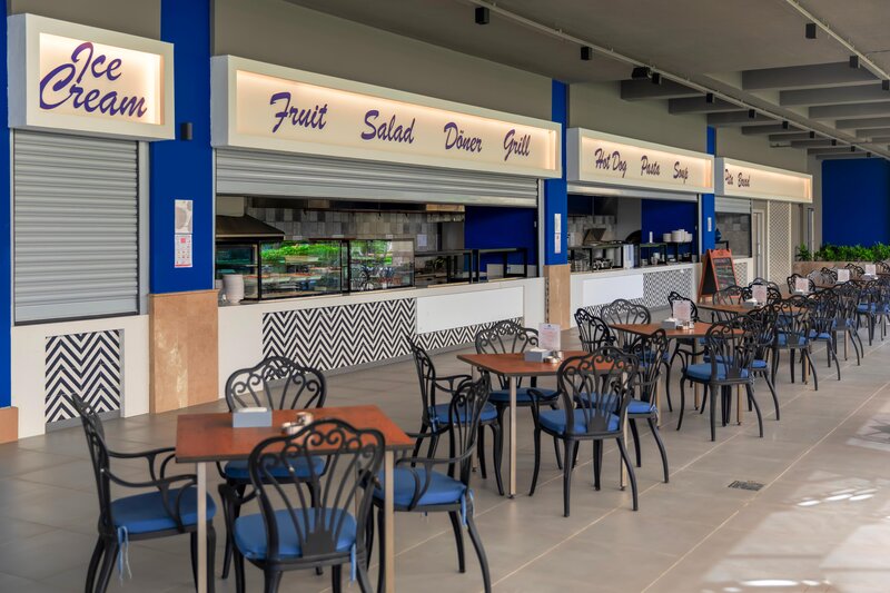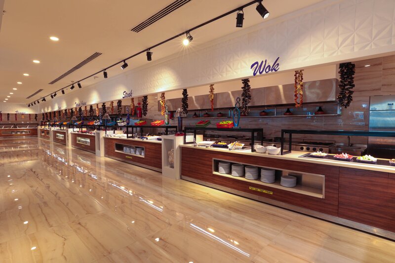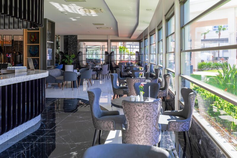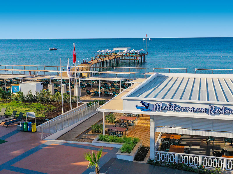 Vybavenie: Kompaktný prázdninový komplex s bazénom, čiastočne zrekonštruovaný v zime 21.22. Aquapark s toboganmi a relaxačným bazénom (vyhrievaný v apríli a od polovice októbra v závislosti od počasia). Ležadlá, slnečníky, plážové osušky pri bazéne a na pláži, bar pri bazéne/snack bar, plážový bar. Lobby, recepcia, hlavná reštaurácia, 3 à la carte reštaurácie (ryba (za poplatok), talianska, turecká), bary, obchody, kaderníctvo. Národná kategória: 5 hviezdičiek, 400 izieb.