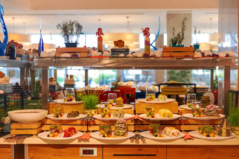 Jedlo a pitie: all inclusive plus: raňajky formou bufetu, studený/teplý bufet na obed a večeru, voliteľne raz za pobyt večera à la carte (talianska, turecká; minimálny pobyt 7 nocí)