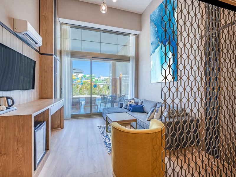 - Family Duplex Swim-Up (FZX2), Familienzimmer, Nichtraucherzimmer, Poolseite, Ostseite, Poolblick, Gartenblick, ca. 38 m², Gesamtanzahl der Räume in diesem Zimmertyp: 2, Aufteilung wie folgt: kombiniertes Wohn-/Schlafzimmer, Maisonette, 2 Einzelbetten, 1 Doppelbett, Babybett: ohne Gebühr, Anfrage & Reservierung nicht notwendig, Klimaanlage: individuell regelbar, Heizung: individuell regelbar, Fußboden: Laminat, Safe: ohne Gebühr, Sitzecke, Sofa, Kaffee-/Teezubereiter, Wasserkocher, Minibar: ohne Gebühr, Softdrinks: ohne Gebühr, Wasser: ohne Gebühr, Minibarauffüllung: täglich, Internet: WLAN/WiFi: ohne Gebühr, Fernseher: Flatscreen, im Schlafzimmer, im Kinderzimmer, Kabel-TV, Reinigungsservice, Dusche, WC, Bademantel: ohne Gebühr, Slipper: ohne Gebühr, 2 Bäder, Föhn, Terrasse: mit Liegen, mit Sitzgelegenheit, mit direktem Poolzugang