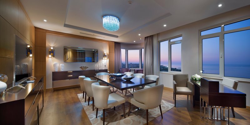 Apartmán: Klimatizácia (centrálne ovládaná), minibar (za poplatok), rýchlovarná kanvica, uteráky, TV, telefón, internet (za poplatok), trezor (za poplatok), kúpeľňa, fén. Max. 5 osôb.