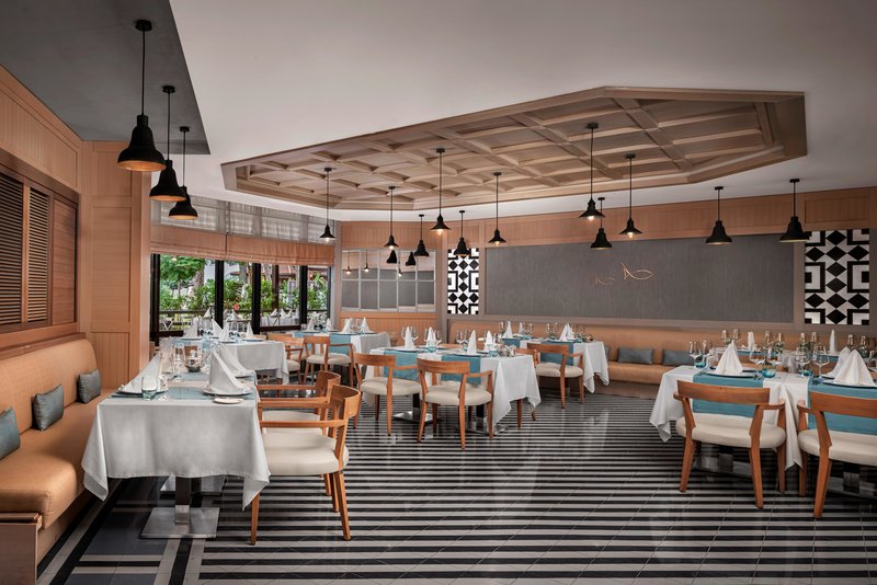 Ausstattung: Garten, 2 Pools, Kinderpool. Liegen, Schirme, Auflagen, Handtücher am Pool und am Strand (geg. Geb.), Beach-Bar, Pool-Bar. Empfangshalle, Rezeption, Lobby-Bar, Lounge. Restaurant (Buffet) mit nationalen und italienischen Speisen, Terrasse, 4 Bars, Minimarkt, Shop, Friseur, Parkplatz (geg. Geb.). 356 Zimmer, 8 Etagen, 4 Lifte.