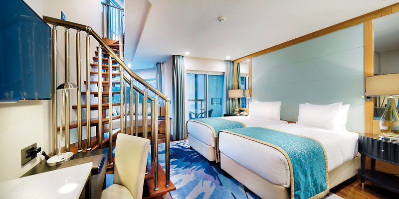 - Dvojlôžková, prístavba, hlavná budova, výhľad na more (bočný), nefajčiarske, sprcha, WC, fén, klimatizácia, centrálne ovládané, minibar, pravidelne dopĺňaný, trezor, 1 TV (satelitná TV), rýchlovarná kanvica, káva/čaj, balkón (zariadený)