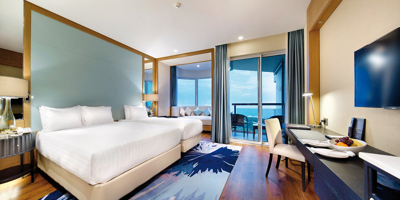 - Dvojlôžková, prístavba, hlavná budova, výhľad na more (bočný), nefajčiarske, sprcha, WC, fén, klimatizácia, centrálne ovládané, minibar, pravidelne dopĺňaný, trezor, 1 TV (satelitná TV), rýchlovarná kanvica, káva/čaj, balkón (zariadený)