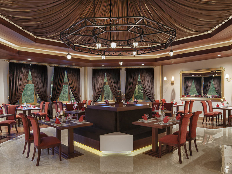 - Hauptrestaurant „Kybele Restaurant“: Küche: international, Kinderbuffet: ohne Gebühr, Buffet, Showcooking, ohne Gebühr, bei All Inclusive inklusive, drei Essenszeiten am Abend, klimatisierbar, mit Terrasse, Raucherbereich, Kinderhochstuhl, angemessene Kleidung erwünscht