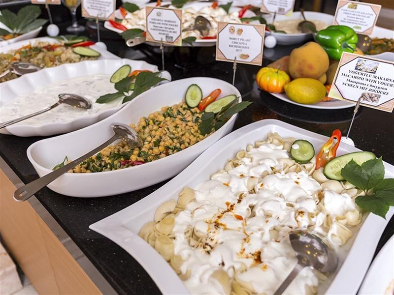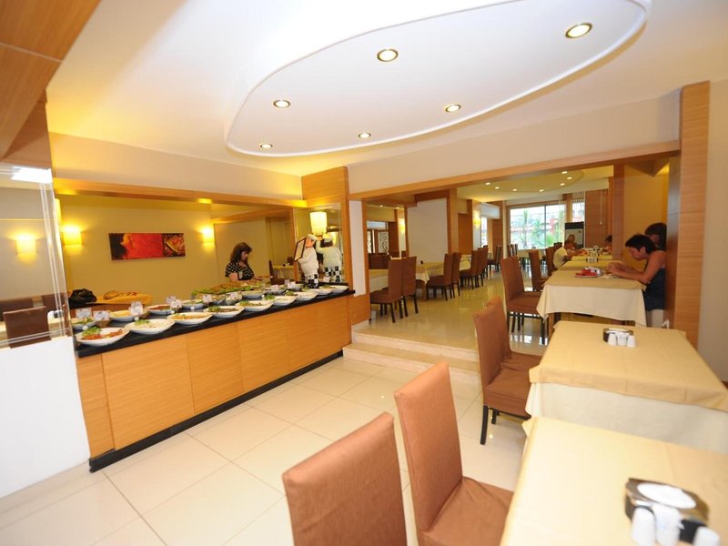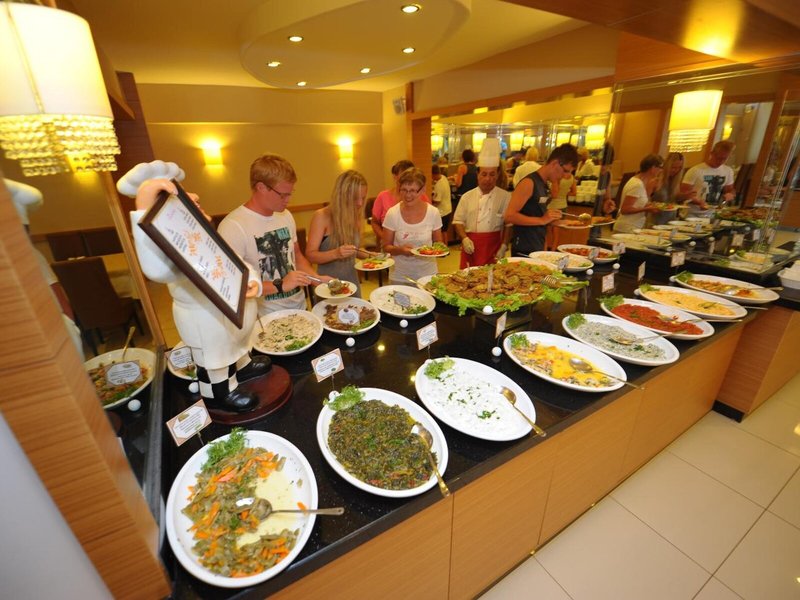 Jedlo a pitie: K dispozícii sú rôzne možnosti stravovania vrátane raňajkovej miestnosti a baru. V nefajčiarskej, klimatizovanej reštaurácii čakajú hostí rôzne špeciality. Apartmánový hotel ponúka ubytovanie s raňajkami, polpenziu a plnú penziu. Bohaté raňajky formou bufetu, obed a pestrá večera formou bufetu sú lahodné a pestré.