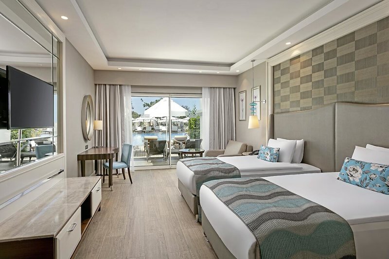 - 71-80 qm, Familien, mit Verbindungstür, Nebengebäude, Gartenblick, Poolblick, 2 separate Schlafzimmer, Dusche, WC, Bademantel, Badeslipper, Haartrockner, Klimaanlage, zentral gesteuert, Minibar, Auffüllung regelmäßig, Safe, 1 TV (Sat-TV), Wasserkocher, Kaffee/Tee, Terrasse (möbliert), direkter Poolzugang