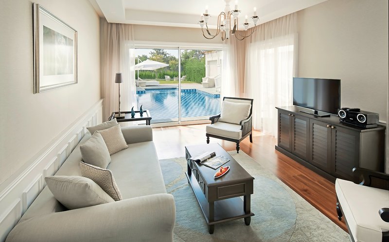 - >200 qm, Villa, Gartenblick, Poolblick, 1 separater Wohnraum, Dusche, Badewanne, WC, Bademantel, Badeslipper, Haartrockner, Klimaanlage, zentral gesteuert, Minibar, Safe, 1 TV (Sat-TV), Wasserkocher, Terrasse (möbliert), Privatpool, Butlerservice
