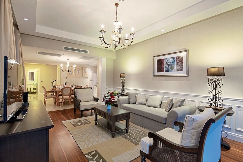 - 71-80 qm, Suite, Gartenblick, 2 separate Schlafzimmer, Dusche oder Badewanne, WC, Bademantel, Badeslipper, Haartrockner, Klimaanlage, zentral gesteuert, Minibar, Auffüllung regelmäßig, Safe, TV (Sat-TV), Wasserkocher, Kaffeemaschine, Kaffee/Tee, Balkon (möbliert)