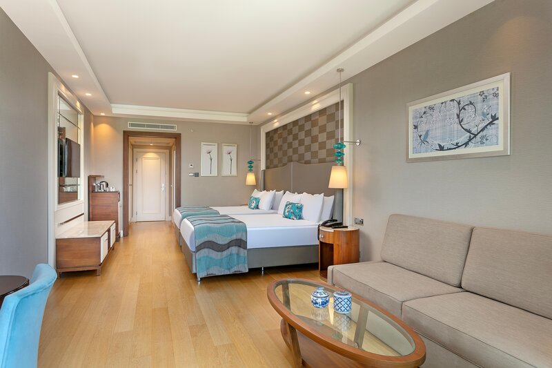 Štandardná rodinná suita (balkón, výhľad na bazén, 2 spálne): Minibar (za poplatok). Kanvica, uteráky. TV, telefón, internet (za poplatok), trezor (za poplatok). Vaňa alebo sprcha/WC, sušič vlasov. Max. 5 osôb.