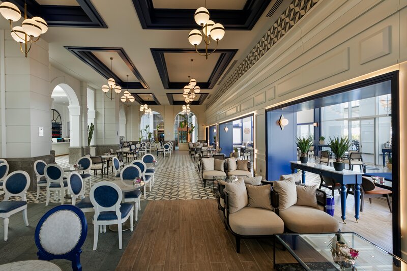 Ausstattung: Garten, 4 Pools, Kinderpool, Wasserrutsche. Liegen, Schirme, Auflagen am Pool und am Strand (geg. Geb.), Beach-Bar, Pool-/Snackbar. Empfangshalle, Rezeption, Lobby-Bar, Lounge. 5 Restaurants (Buffet & à la carte) mit nationalen und italienischen Speisen, Fast Food und Terrasse, 11 Bars, Cafeteria, Minimarkt, Shop, Friseur, Diskothek, Kino. 551 Zimmer, Lift.