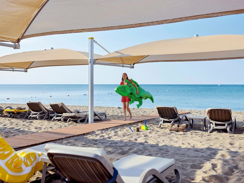 • Pláž: piesok, štrk, dĺžka pláže: cca 250 m, hotelová vlastná, ležadlá: zdarma, slnečníky: zdarma