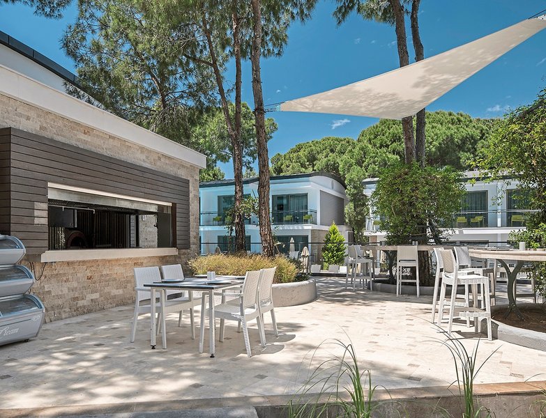 - bufetová reštaurácia: turecká kuchyňa, medzinárodná kuchyňa, s terasou, (1 reštaurácia pre deti od 16 rokov, 1 pre rodiny)