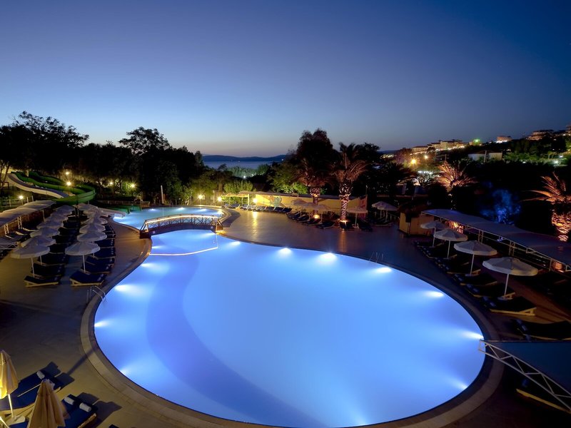 Sport & Fitness: In der Außenpoolanlage (ohne Gebühr) finden die Gäste belebende Erfrischung. Außerdem gibt es einen Kinderbadebereich mit 2 Planschbecken. Eine Wasserrutsche sorgt für Badespaß bei Jung und Alt und eine Poolbar für erfrischende Getränke und die Stärkung zwischendurch. Zur Erholung laden Liegestühle unter Sonnenschirmen auf der Sonnenterrasse ein. Die Unterbringung bietet ein umfangreiches Outdoor-Sportprogramm mit Tennis, Boccia, Beachvolleyball, Basketball, Nordic Walking und Jogging. Mit Wasseraerobic und gegen Gebühr Windsurfen, Jetskifahren, Bananenbootfahren, Segeln, Schnorcheln und Tauchen kommen auch Wassersportfreunde auf ihre Kosten. Den Gästen steht im Komplex mit einem Fitnessstudio, Tischtennis, Darts, Yoga, Aerobic und Pilates ein breites Spektrum an Indoor-Sportarten zur Auswahl. In der Unterbringung werden jeweils gegen Gebühr verschiedene Wellnessangebote wie ein Spa, eine Beautyfarm, Massage-Anwendungen, eine Aromatherapie, eine Cellulite-Behandlung und eine Fussreflexzonen-Massage offeriert. Fremdveranstalter bieten ein Spa, eine Sauna, ein Hammam, Massage-Anwendungen, eine Aromatherapie, eine Cellulite-Behandlung und eine Fussreflexzonen-Massage an. Zu den weiteren Freizeitangeboten zählen ein Animationsprogramm, ein Miniclub, eine Minidisco, Live-Musik und eine Disco.