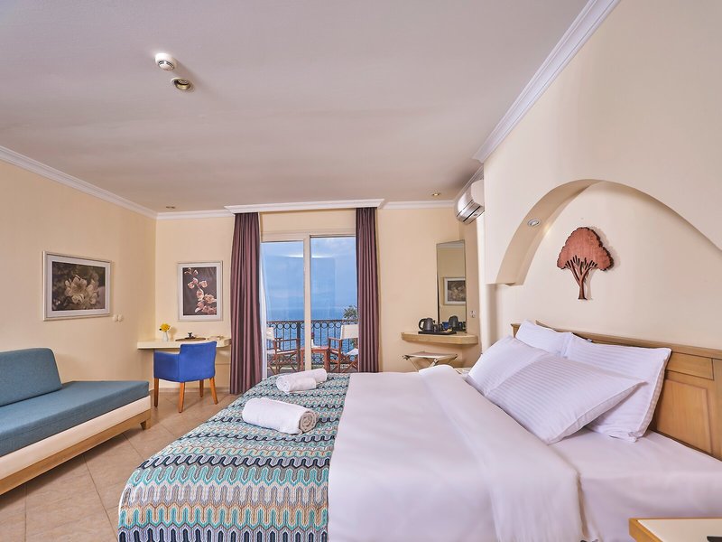 Ubytovanie: Izby sú klimatizované (zadarmo). Väčšina jednotiek ponúka čiastočný výhľad na more z balkóna alebo terasy. Väčšina jednotiek má výhľad na more. Detské postieľky sú k dispozícii na požiadanie zadarmo. K dispozícii je aj trezor a písací stôl. Štandardom je aj mini chladnička. K dispozícii je aj telefón a TV. Hostia môžu využiť aj záverečné upratovanie. Kúpeľňa so sprchovacím kútom a detskou vaničkou je vybavená sušičom vlasov a telefónom. Pre rodičov s deťmi sú k dispozícii rodinné izby.