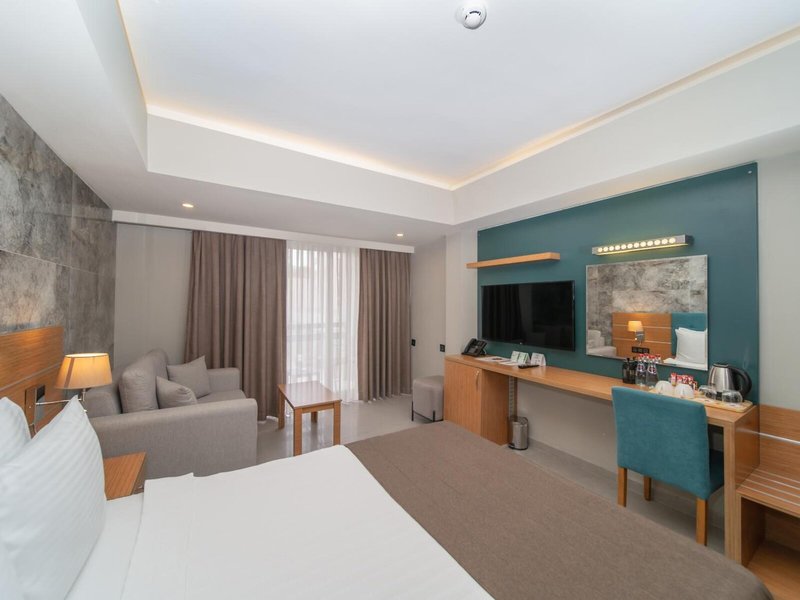 Vaše ubytovanie: Izby sú klimatizované. Na balkóne alebo súkromnej terase väčšiny izieb si hostia môžu oddýchnuť a vychutnať si výhľad na more. Hostia sa môžu pohodlne vyspať na posteli veľkosti king. Prístelky je možné požiadať. K dispozícii je aj trezor a za poplatok minibar. Kuchynka je vybavená chladničkou a mikrovlnnou rúrou. Pre pohodlie hostí je k dispozícii lis na nohavice. Okrem toho je k dispozícii telefón s priamou voľbou, TV s plochou obrazovkou so satelitnými programami, budík a Wi-Fi pripojenie (bezplatné). K vybaveniu izieb patria papuče. V kúpeľniach je k dispozícii sušič vlasov a telefón na každodenné použitie. Ako špeciálne vybavenie si hostia môžu vychutnať toaletné potreby a výber uterákov v kúpeľniach. Hotel ponúka rodinné a nefajčiarske izby.