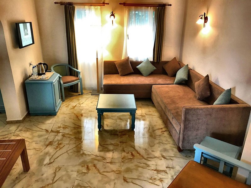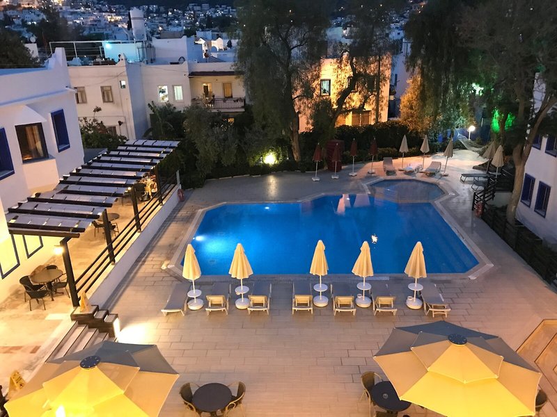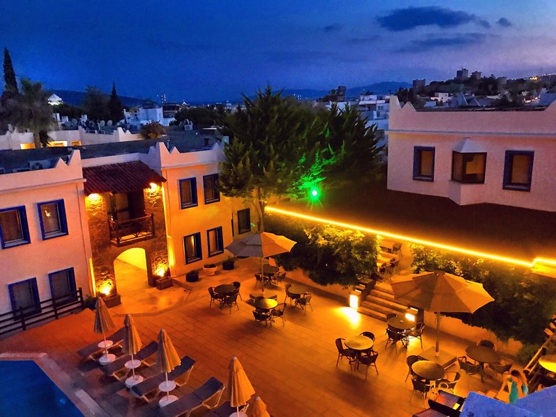 Lage & Umgebung Das attraktive Hotel befindet sich in der Nähe des touristischen Zentrums von Bodrum, nur 200 m vom einladenden Sandstrand, der Ortsmitte und 100 m vom öffentlichen Verkehrsmitteln entfernt. Hier erwarten Sie einige Geschäftszonen mit vielfältigen Einkaufsmöglichkeiten, Boutiquen, diversen Bars und zahlreichen Restaurants. In der näheren Umgebung (ca. 400 m) gibt es den Yachthafen. Den Flughafen Bodrum erreichen Sie mit dem Auto nach etwa 35 km.
