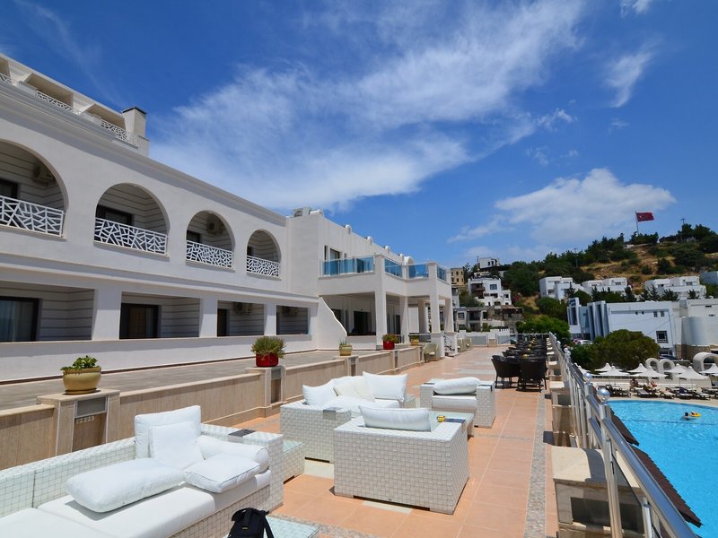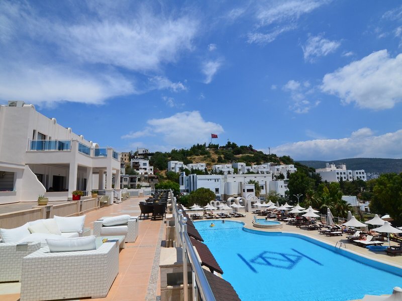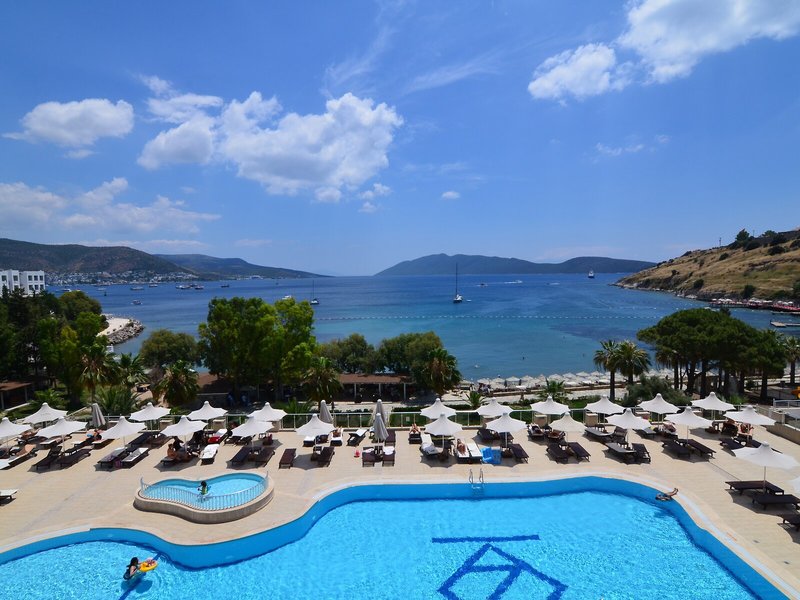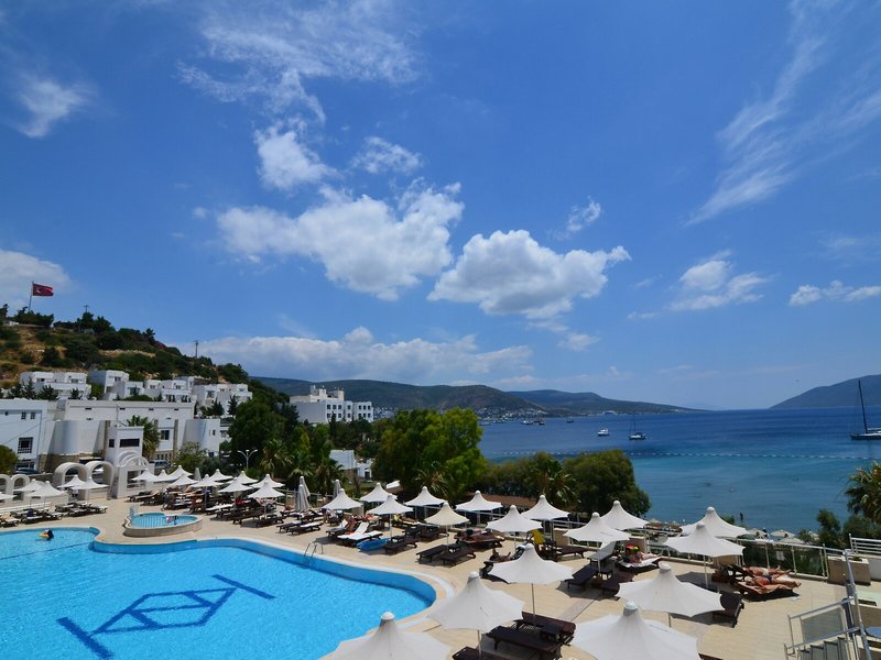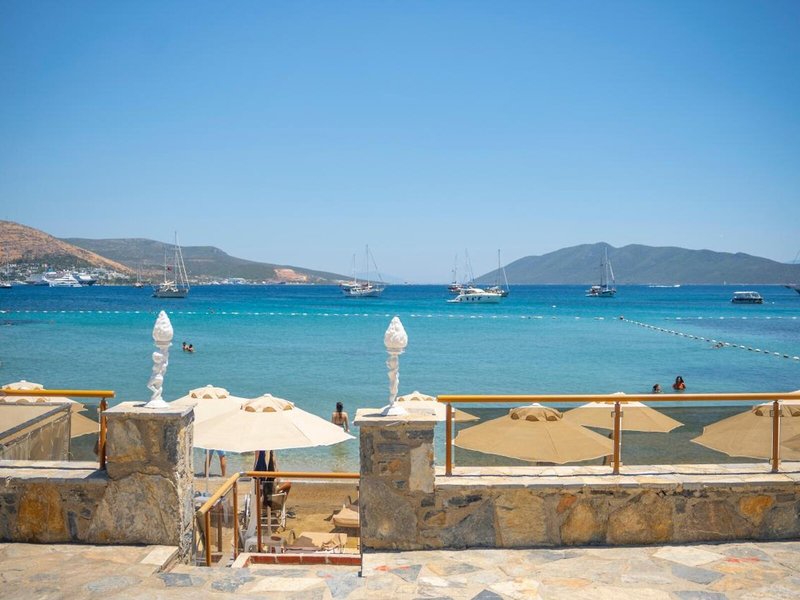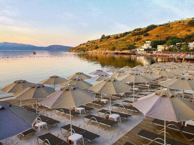 Poloha a okolie Komfortný hotel sa nachádza v malebnom prostredí, priamo na pláži. Do živého centra mesta Bodrum, vzdialeného približne 1,5 km, s početnými nákupnými a zábavnými možnosťami sa ľahko dostanete spoločným taxíkom, pravidelnou autobusovou alebo lodnou kyvadlovou dopravou.