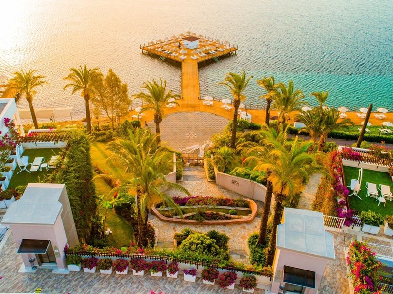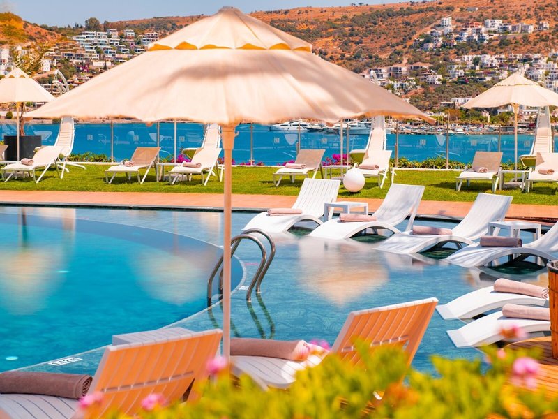 Toto vás čaká: Hotel ponúka úchvatný výhľad na záliv Gündogan. Vlastný aquapark hotela, súkromná pláž s exkluzívnou slnečnou terasou v mori, moderné dizajnové izby a rozmanitý športový a wellness program zaručujú absolútnu pohodu na dovolenke.