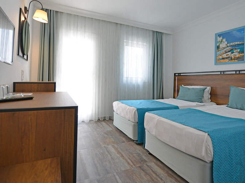 Poloha a okolie Mestský hotel sa nachádza v rekreačnom stredisku Bodrum Bitez, len asi 100 m od pláže a je príjemne na krátku vzdialenosť k mestským hotspotom Bieleho mesta s prístavom. Je to asi 2 km do Gumbet a asi 6 km do centra mesta Bodrum. Letisko Bodrum-Milas je vzdialené približne 40 km.