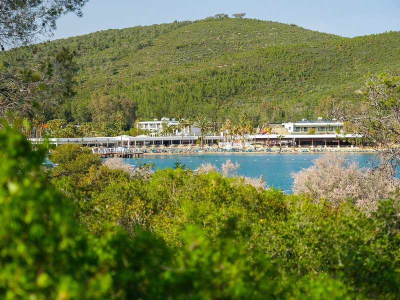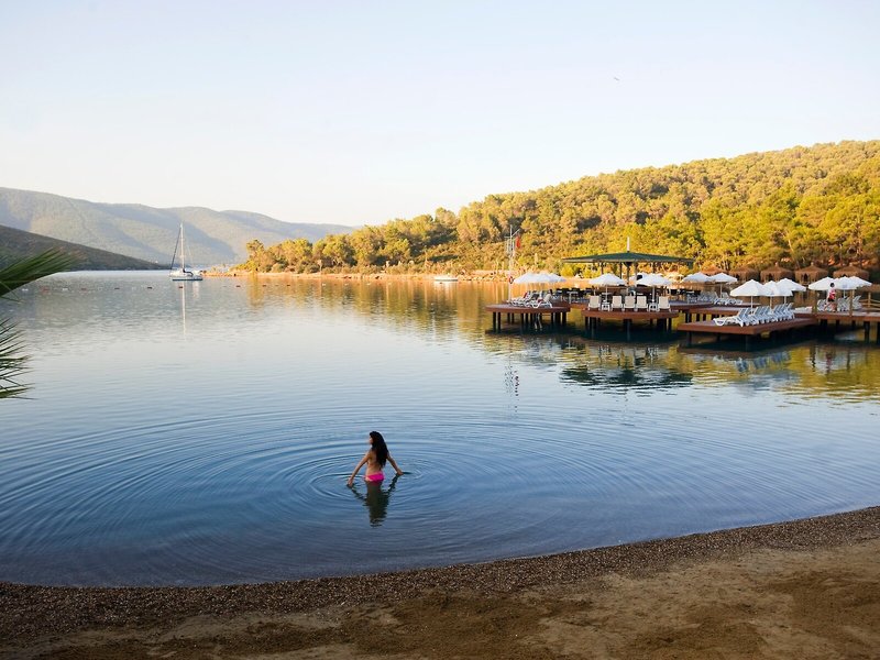Lage & Umgebung Die Anlage liegt ideal an einer privaten Bucht. Die Gäste genießen Meerblick und den kühlenden Schatten der Pinien, die hinter der Anlage wachsen. Eine Anbindung an den öffentlichen Nahverkehr finden die Gäste nur etwa 10 m entfernt. Der kleine Ferienort Güvercinlik mit Hotels, Wohnhäusern und Restaurants (auch direkt am Wasser) ist rund 3 km entfernt. Mit den öffentlichen Verkehrsmitteln ist der lebhafte Urlaubsort Bodrum in rund 30 min erreicht. Zum Flughafen Milas - Bodrum sind es ungefähr 12 km.