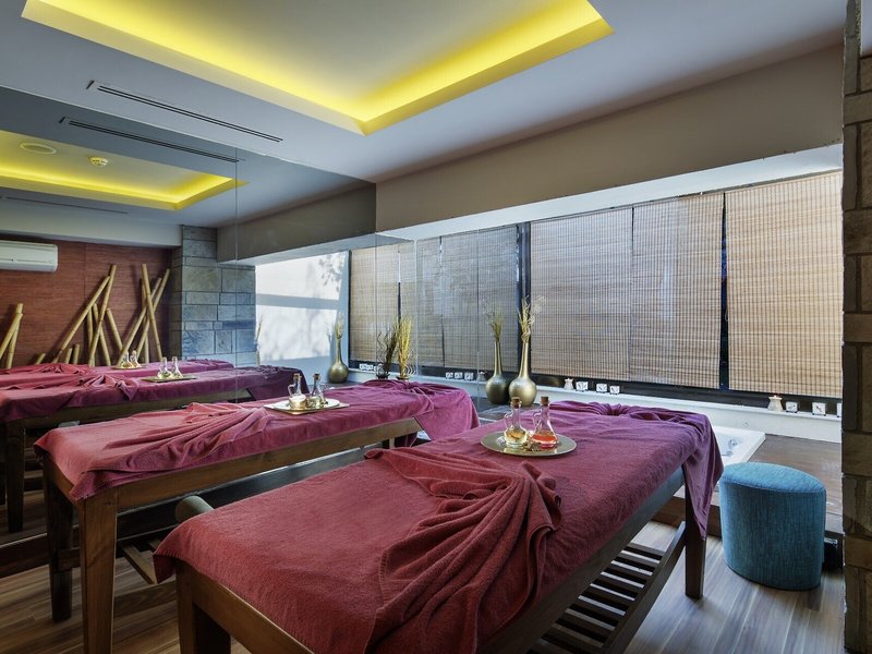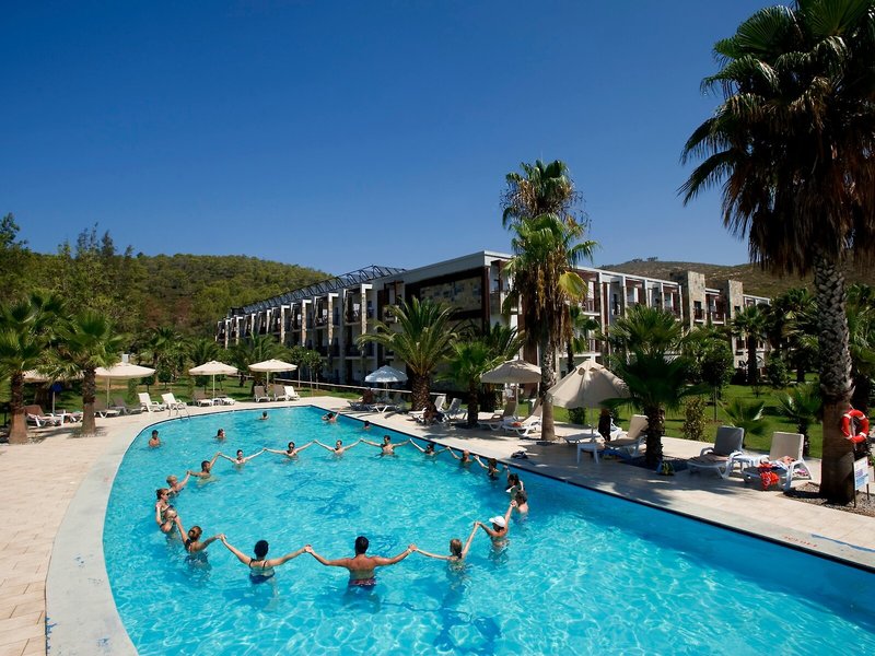 Sport & Fitness: Im Poolbereich mit Salz- und Süßwasserbecken gibt es auch Kinderpools. Ein paar Runden schwimmen oder sich einfach schwerelos treiben lassen können die Erwachsenen in einem der 3 Hallen- und Freibäder. Nervenkitzel auf der Wasserrutsche, erfrischende Getränke an der Poolbar und wohlige Muskelentspannung im Whirlpool (gegen Gebühr) – für jede Stimmung und Kondition bietet der Badebereich etwas an. Auch eine Terrasse mit Sonnenliegen und Sonnenschirmen ist vorhanden. Die Unterbringung bietet ein sehr umfangreiches Outdoor-Sportprogramm mit Tennis, Boccia, Beachvolleyball, Volleyball, Basketball, Minigolf und Bogenschießen sowie gegen Gebühr Radfahren/Mountainbiking. Mit Schnorcheln und gegen Gebühr Wasserskifahren, Windsurfen, Jetskifahren, Motorbootfahren, Tretbootfahren, Bananenbootfahren, Kanufahren, Segeln, Katamaranfahren, Kajakfahren, Tauchen und Wasseraerobic kommen auch Wassersportfreunde auf ihre Kosten. Den Gästen steht im Resort mit einem Fitnessstudio, Tischtennis, Billard, Darts, Squash, Yoga, Gymnastik und Aerobic ein breites Spektrum an Indoor-Sportarten zur Auswahl. Die Anlage verfügt über einen Wellnessbereich mit einem Spa, einer Sauna, einem Dampfbad und einem Hammam sowie gegen zusätzliche Gebühr einen Schönheitssalon und Massage-Anwendungen. Kleine und große Gäste haben die Möglichkeit, mit Unterhaltungsprogrammen ihren Aufenthalt abwechslungsreicher zu gestalten.