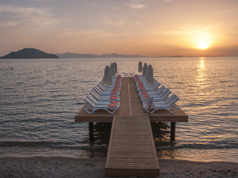 Poloha a okolie Hotel s vlastnou súkromnou plážou sa nachádza v malom mestečku Turgutreis na západnom pobreží Bodrumu v juhozápadnom Turecku. Do centra mesta je to cca 10 km. Bodrum je vzdialený približne 20 km. V blízkosti hotela sú reštaurácie. Čas presunu z/do Bodrumu (BJV) cca. 50 minút, z/do Izmiru (ADB) cca. 3,5 hodiny.