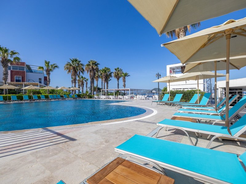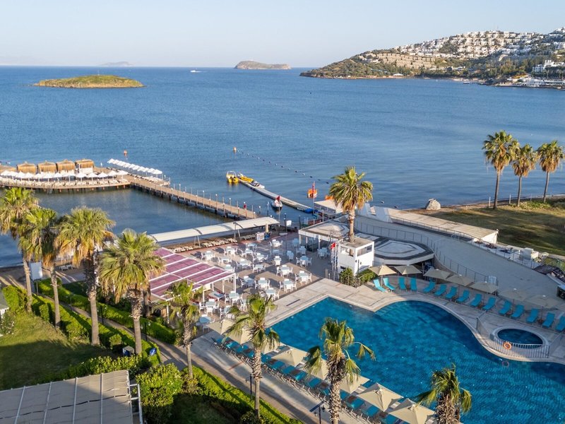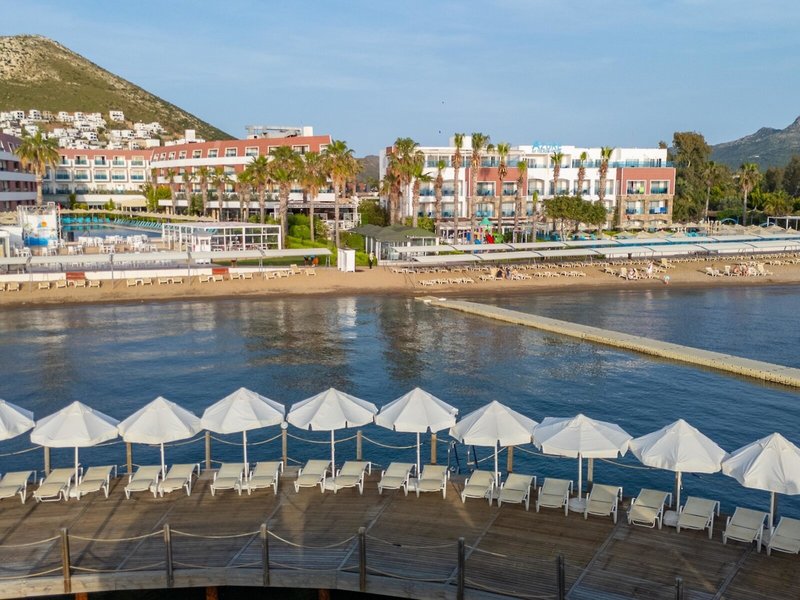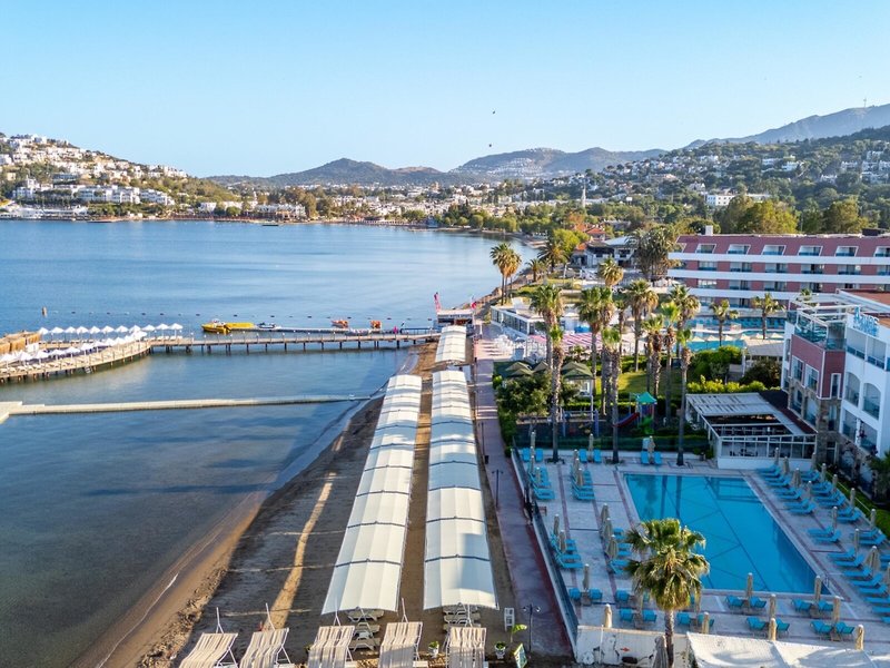 Poloha a okolie Hotel sa nachádza v Turgutreis na polostrove Bodrum, priamo na krásnej piesočnatej pláži. Turgutreis je známy svojou plážou, obchodmi a reštauráciami. Priamo pred hotelom je zastávka MHD. Do centra mesta Bodrum je to asi 22 km.