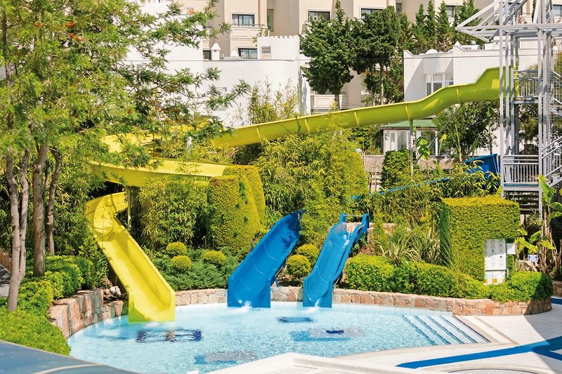 - 1 Pool: Süßwasser, Wasserrutschen: 3 (stundenweise in Betrieb), Sonnenschirme, Liegen, Badetuch