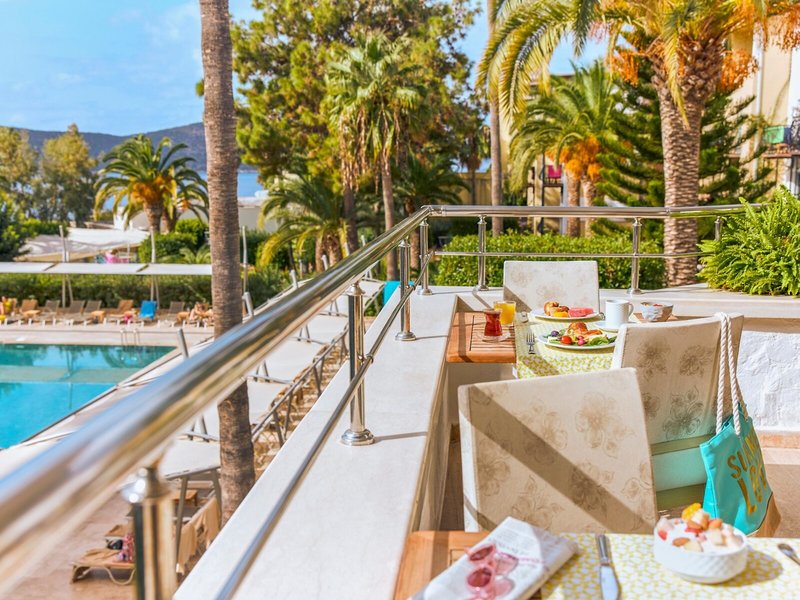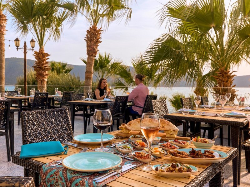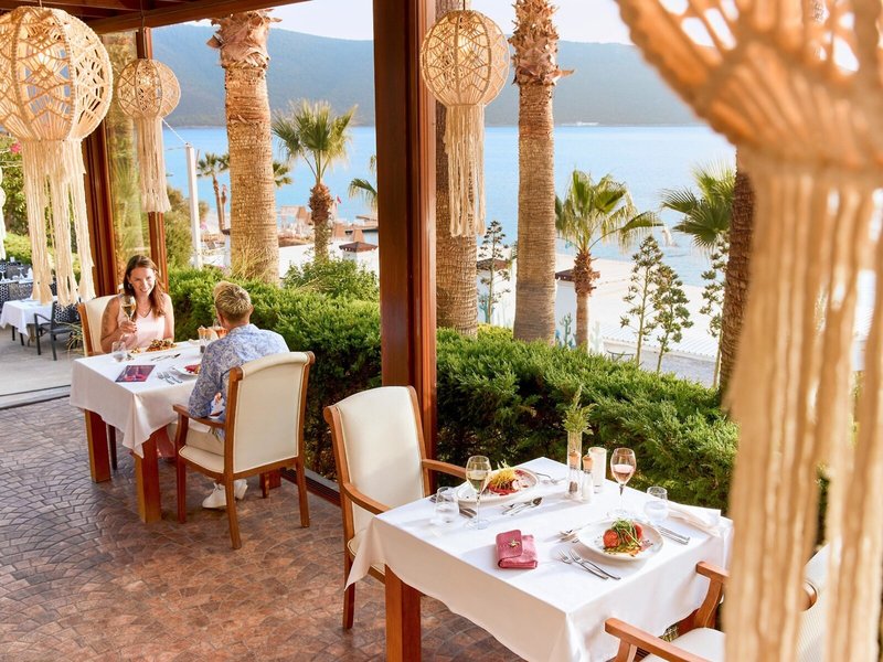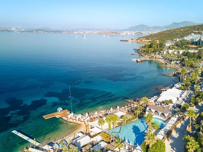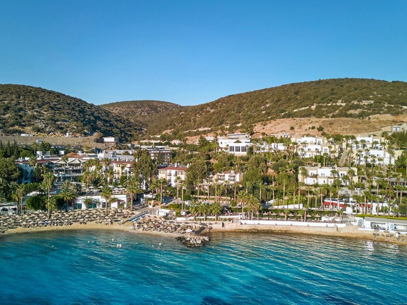 Poloha a okolie: Nachádza sa priamo na krásnej piesočnatej a kamienkovej pláži. Blízke mesto Bodrum s lákavými obchodmi a reštauráciami je vzdialené približne 6 km. Letisko v Bodrume je vzdialené približne 45 km, pričom doba transferu je približne 45 minút.