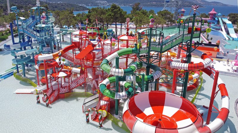 Vybavenie: Váš priestranný dovolenkový dom má rozlohu viac ako 200 000 m² a ponúka vám 833 izieb, ktoré sú rozmiestnené v hlavnej budove so štyrmi poschodiami a niekoľkých bungalovoch s dvoma poschodiami. Víta vás pompézna recepcia s recepciou, výťahmi, posedením a lobby barom, hlavná reštaurácia s terasou a výhľadom na záliv Torba, rôzne špecializované reštaurácie (každá s rezerváciou), cukráreň a rôzne bary sa postarajú o vašu fyzickú pohodu. K ďalšiemu vybaveniu v areáli hotela patrí Wi-Fi v cene, herňa (za poplatok), konferenčné miestnosti, exkluzívne obchody, presvetlený krytý bazén s vírivkou a samostatným detským bazénom a skvelé wellness. V hotelovom komplexe nájdete aj areál Candyland s rozlohou 200 000 m² s 3 bazénmi, 25 toboganmi, zábavným parkom, ako aj obrovským bazénom s hlavným bazénom a samostatným detským bazénom, stupňovitým relaxačným bazénom a slnečnými terasami. Ležadlá, vankúše, slnečníky a plážové osušky sú zahrnuté okolo bazénov, v Candyland a samozrejme na pláži s moderným mólom a plážovým barom.