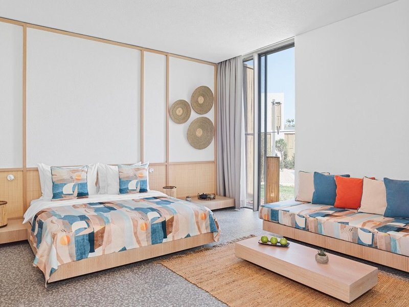 - Lagoon Swim-up (DZG5), Doppelzimmer, Nichtraucherzimmer, im Nebengebäude, Poolseite, Poolblick, Gartenblick, ca. 63 m², letzte Komplettrenovierung 2020, Gesamtanzahl der Räume in diesem Zimmertyp: 1, Aufteilung wie folgt: kombiniertes Wohn-/Schlafzimmer, 1 Doppelbett (180x200cm), 1 Schlafsofa, Babybett: ohne Gebühr, Anfrage & Reservierung notwendig, Klimaanlage: ohne Gebühr, zentral gesteuert, kalt, Fußboden: Fliesenboden, Safe: ohne Gebühr, Sofa, Nespressomaschine, Kaffee-/Teezubereiter, Wasserkocher, Minibar: ohne Gebühr, Softdrinks: ohne Gebühr, Wasser: ohne Gebühr, alkoholische Getränke: ohne Gebühr, Snacks: ohne Gebühr, Minibarauffüllung: täglich 24 Stunden, Telefon, Internet: WLAN/WiFi: ohne Gebühr, Fernseher: Flatscreen, im Schlafzimmer, deutsches Programm, Sat-TV, Roomservice: täglich, gegen Gebühr, Reinigungsservice: täglich, ohne Gebühr, separate Dusche, separates WC, Slipper: ohne Gebühr, Föhn, Kosmetikspiegel, Terrasse: mit Sitzgelegenheit