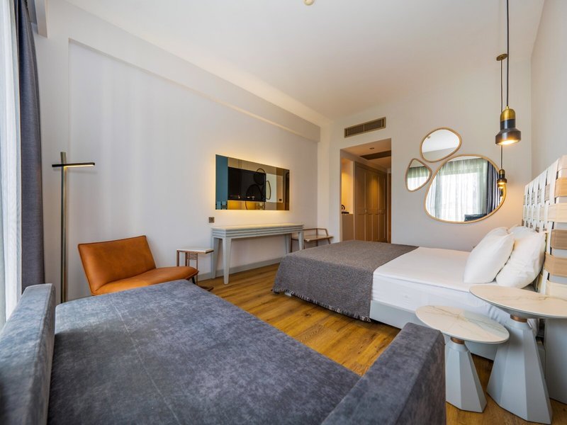 - Rodinná suita (FZX1), rodinná izba, cca 40 - 42 m², celkový počet izieb v tomto type izby: 3, rozloženie: obývacia izba, 2 spálne, detská postieľka: bez poplatku, klimatizácia: bez poplatku, centrálne ovládaný, trezor: bez poplatku, posedenie, kávovar/čajník, rýchlovarná kanvica, minibar: za poplatok, telefón, Internet: WLAN/WiFi: bez poplatku, TV: plochá obrazovka, izbová služba: za poplatok, sprcha, WC, fén, balkón: s posedením