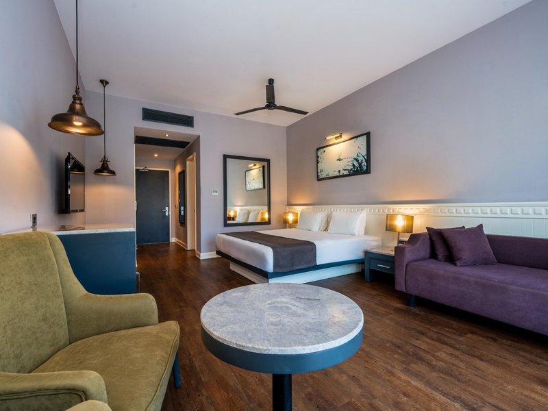 - Attick Room Poolview (DZX5), Doppelzimmer, Poolseite, Poolblick, ca. 20 - 22 m², Gesamtanzahl der Räume in diesem Zimmertyp: 1, Aufteilung wie folgt: 1 Schlafzimmer, Klimaanlage: ohne Gebühr, zentral gesteuert, Fußboden: Laminat, Safe: ohne Gebühr, Sitzecke, Kaffee-/Teezubereiter, Wasserkocher, Minibar: gegen Gebühr, Telefon, Internet: WLAN/WiFi: ohne Gebühr, Fernseher: Flatscreen, Roomservice: gegen Gebühr, Dusche, WC, Föhn, Balkon oder Terrasse: mit Sitzgelegenheit