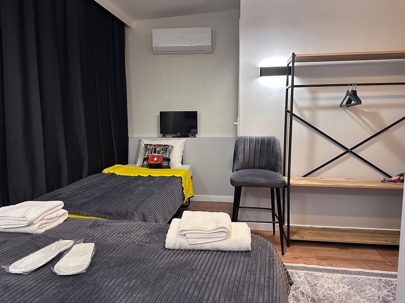 So wohnen Sie: In den Zimmern gibt es eine Klimaanlage und eine Heizung. Auf Balkon oder Terrasse lässt es sich für die Gäste herrlich entspannen. Die Zimmer verfügen über ein Doppelbett und ein Sofabett. Zustellbetten können angefordert werden. Außerdem sind eine Minibar und ein Schreibtisch verfügbar. Auch ein Kühlschrank, ein Herd, eine Mikrowelle, eine Tee-/Kaffeemaschine und ein Geschirrspüler sind vorhanden. Ein Bügelset ist für den zusätzlichen Komfort der Gäste verfügbar. Darüber hinaus sind ein Telefon, ein TV-Gerät mit Satelliten-/Kabelempfang und WiFi (ohne Gebühr) vorhanden. Zu den Vorzügen der Zimmer gehören Hausschuhe. Im Badezimmer, ausgestattet mit einer Dusche und einer Badewanne, gibt es einen Haartrockner. Als Besonderheit genießen die Gäste in den Badezimmern Kosmetikartikel und eine Auswahl an Handtüchern. Das Hotel bietet Familien- und Nichtraucherzimmer.