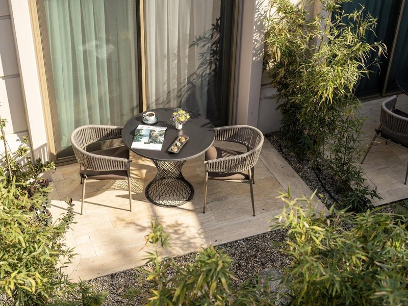 Sport & Fitness: Auf der Terrasse können die Urlauber schönes Wetter genießen. Wohlige Entspannung verspricht der Whirlpool im Badebereich. Fitnessstudio, Yoga und Aerobic sind Teil des Sport- und Freizeitangebots des Hauses. Im Hotel werden verschiedene Wellnessangebote wie Spa, Sauna, Dampfbad, Hammam, Schönheitssalon und Massage-Anwendungen offeriert.