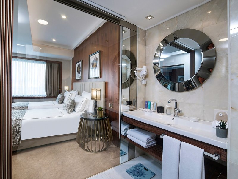 Ubytovanie: Izby sú klimatizované. Izby s kobercami majú manželskú posteľ. Prístelky alebo detské postieľky sú k dispozícii pre mladších cestovateľov za poplatok. K dispozícii je aj trezor a písací stôl a minibar za poplatok. Telefón s priamou voľbou, TV so satelitnými/káblovými programami a Wi-Fi (bezplatné) poskytujú maximálne pohodlie. Hostia môžu tiež využiť službu večerného rozostlania. Kúpeľňa so sprchovacím kútom je vybavená sušičom vlasov a županmi.