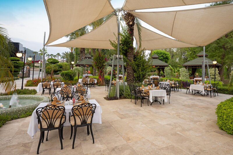 Ausstattung: Garten, Pool, Kinderpool, Wasserrutsche. Liegen, Schirme, Auflagen, Handtücher am Pool und am Strand (geg. Geb.), Beach-Bar, Pool-Bar. Empfangshalle, Rezeption, Lobby-Bar. Restaurant (Buffet) mit nationalen und italienischen Speisen, Terrasse, Bar, Minimarkt, Shop, Friseur, Diskothek, Parkplatz (geg. Geb.). 816 Zimmer.