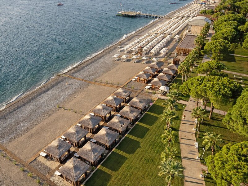 Poloha a okolie Orientálny luxusný hotel má fantastickú polohu priamo na kilometrovej piesočnato/kamienkovej pláži s mólom na kúpanie. Nachádza sa v rekreačnej oblasti Kiris-Kemer. Asi po 500 metroch sa dostanete k rôznym možnostiam behu a zábavy. Do Kemeru je to asi 6 kilometrov. Pred hotelom sú dobré spoje dolmušov. Antalya je vzdialená asi 65 kilometrov. Nachádza sa tam aj rovnomenné letisko.