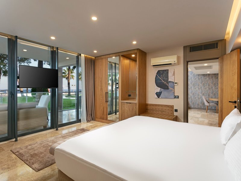 Vaše ubytovanie: Klimatizácia zabezpečuje príjemnú vnútornú klímu. Na balkóne alebo súkromnej terase väčšiny izieb si hostia môžu oddýchnuť a vychutnať si výhľad na more. Hostia sa môžu pohodlne vyspať na manželskej posteli. Detské postieľky je možné poskytnúť bezplatne na požiadanie. K dispozícii je aj trezor a minibar. Štandardom je aj príslušenstvo na prípravu čaju/kávy. Pre pohodlie hostí je k dispozícii žehliaca súprava. K vybaveniu patrí telefón, TV so satelitnými/káblovými programami a Wi-Fi. Ponuka vankúšov sľubuje útulnú pohodu. Kúpeľne sú vybavené sprchovacím kútom, vaňou a vírivkou. K dispozícii je sušič vlasov a župany na každodenné použitie. Výber uterákov zaisťuje extra pohodlie v kúpeľniach. K dispozícii je aj 8 izieb s bezbariérovým prístupom pre vozíčkarov. Rezort ponúka 132 rodinných a nefajčiarskych izieb.