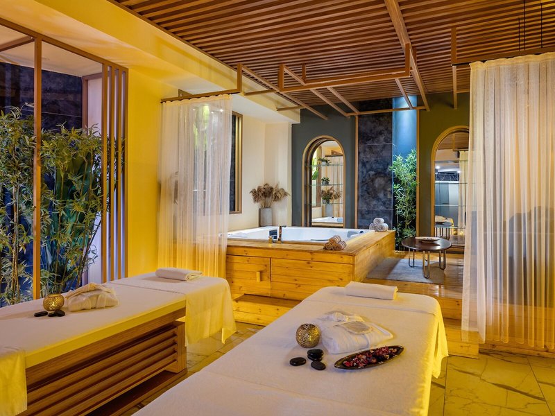 Šport a fitnes: Priestranný bazén so 6 vonkajšími bazénmi sľubuje osvieženie a relax. V chladnejších dňoch je možné využívať krytý bazén (zadarmo). Deti sa môžu vyblázniť v jednom zo 4 detských bazénov. Osviežujúce nápoje v bare pri bazéne a tobogán naladia všetkých milovníkov vody. Užite si dovolenku na slnečnej terase s ležadlami a slnečníkmi. Tí, ktorí si nechcú nechať ujsť športové aktivity počas cestovania, si môžu zahrať plážový volejbal a volejbal. Tenis je k dispozícii za poplatok. Milovníci vodných športov si môžu užiť vodný aerobik a aqua fitness. Rezort ponúka aj množstvo vnútorných aktivít vrátane posilňovne, stolného tenisu, šípok, jogy, gymnastiky, aerobiku a pilatesu. V rezorte sa nachádza wellness centrum so saunou a hammamom, ako aj kúpele, kozmetický salón a masáže za príplatok. Kúpele sú k dispozícii prostredníctvom externých poskytovateľov. Rezort ponúka vynikajúce možnosti na relaxáciu a voľnočasové aktivity vrátane zábavného programu, detského klubu, mini diskotéky, živej hudby a diskotéky.