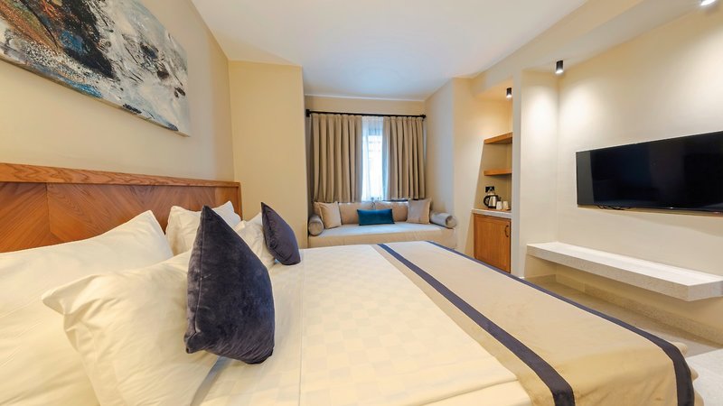 - 26-30 m2, dvojlôžková, sprcha, WC, fén, dlažba, klimatizácia, individuálne nastaviteľná, minibar, denne dopĺňaný, nealko nápoje, minerálna voda, džúsy, voda, trezor, TV (satelitná TV, plochá obrazovka, smart TV), rýchlovarná kanvica, káva/čaj, balkón